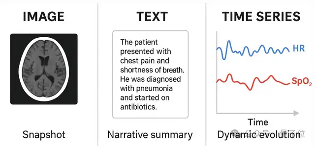 这种多时间尺度交织、采样频率不规则的特性,构成了医疗时序数据最显著的挑战,也是大模型在医疗领域落地应用的核心障碍。