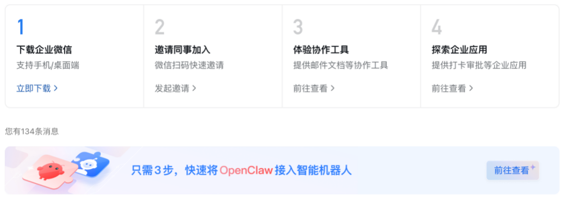 企业微信支持3步接入OpenClaw
